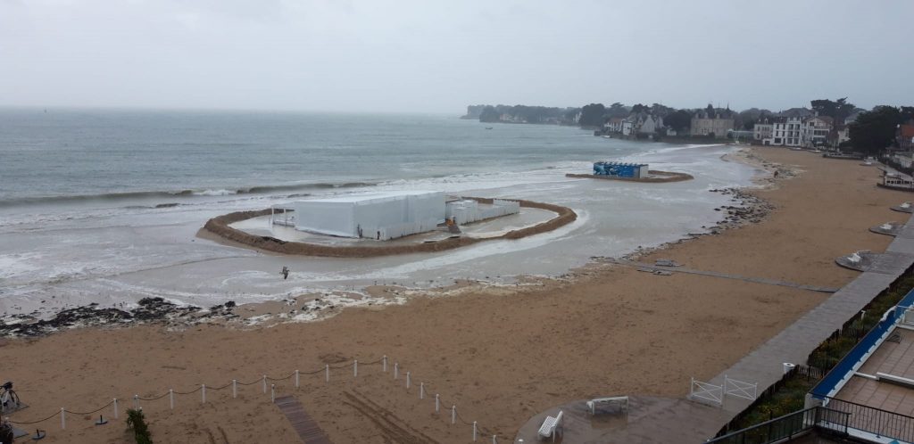 Les grandes marées et les tempêtes font subir aux établissements de plage des dégâts importants dans toute la baie du Pouliguen. Les barrières de sable ne suffisent pas toujours à les protéger.